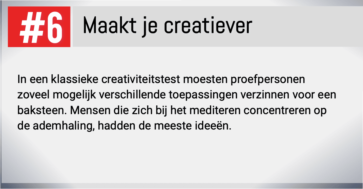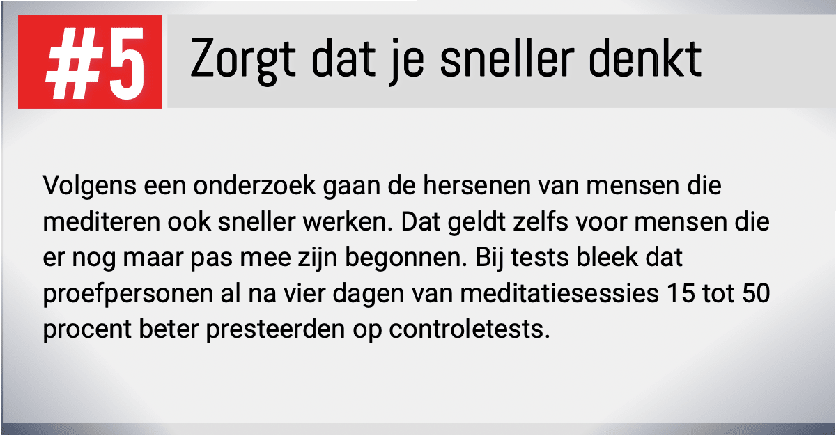 Je leert in een mum van tijd te ontspannen en mentaal helder te worden.